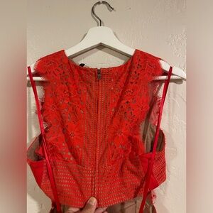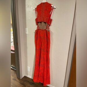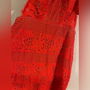 Maxazaria dress in a beautiful late summer/early fall, dark shade of coral.