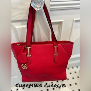 Charming Charlie Red Vegan Leather Tote Shoulder Bag