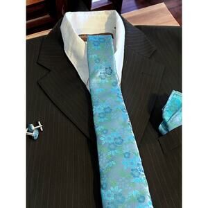 Men’s 3 Piece Tie Set Teal Cyan Tie Pocket Square Cufflinks