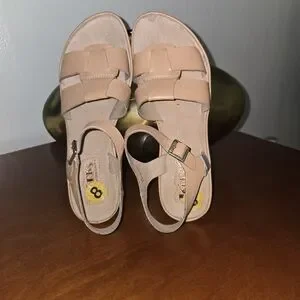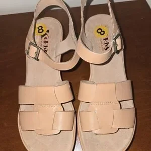 Women's Leather Wedge Heel Korks Sandals, Tan, Size 8, Barely Worn, Great Condition