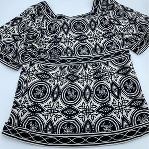Yvos Black and White Graphic Print with Bell Sleeves- Large