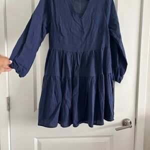 FANCYINN • Blue 2 Tier Ruffle Dress • Small • Worn Once • Great Condition • Baby Doll/ Loose Fit • Cute For a Day/Night Out • Casual/Dressy • Brunch/Baby Shower/Dinner/ • Has Hidden Side Pockets • Chest 41.7 “ • Length 35” • Puffy Sleeves • V Cut Neckline •