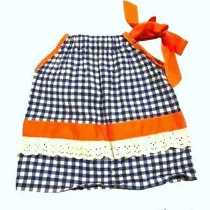 Fall, football, handcrafted, infant, 3/6m, Gainesville, Florida, blue checked, gingham, blue & orange, ribbon, bow