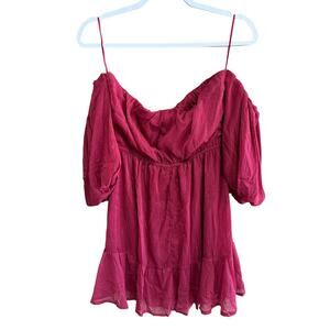 NWT Francesca’s Off The Shoulder Red Wine Shimmer Mini Ruffle Dress Size Medium