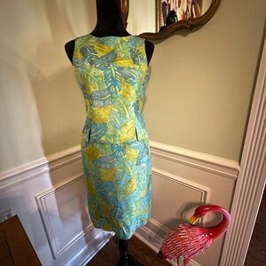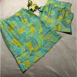 VINTAGE KASPER A.S.L. Petite SILK 2 PC SKIRT AND TOP SET TROPICAL DESIGN SIZE 2