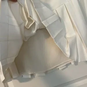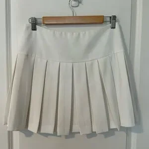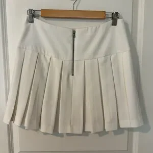 This white pleated skirt with cute zipper detail up the back is lined. Please ask any questions