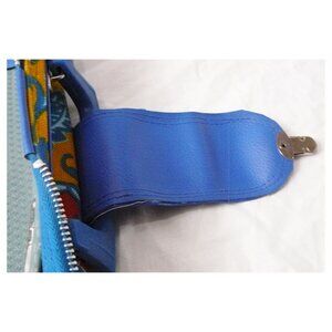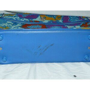 What you see in the picture is exactly what you will receive: amazing suitcase / overnight bag, multi-color vibrant floral print on aqua blue background. Zip around closure, one large interior space with open pocket on one side and straps to secure items, exterior front has a zippered pocket. Mixed materials including fabric, plastic, vinyl and metal.