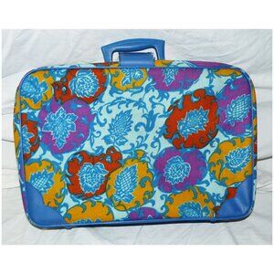 Penguin Travelers NY Vintage Retro/Mod Overnight Luggage Suitcase Blue Floral