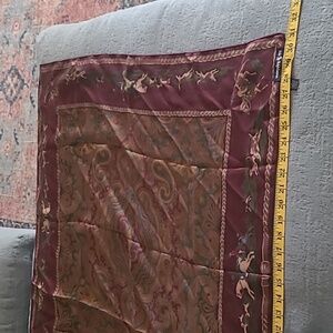 VTG Polo Ralph Lauren Silk Scarf POLO EQUESTRIAN Horse Dogs Burgundy Paisley 31”. Made in Japan. Scarf is in great pre-loved condition with no visible flaws. Perfect fall wardrobe staple, paired with jeans, chunky sweater and riding boots.