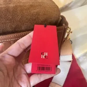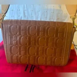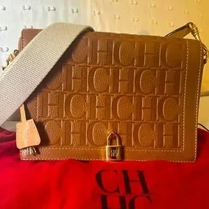 Beautiful Carolina Herrera Andy locked bag! Andy Locked Crossbody bag is handcrafted in Nogal leather, with natural grain and a waxed finish, featuring the embossed Seal with Carolina's initials and a front lock. Finished with a strap, it can be worn cross body or over the shoulder.