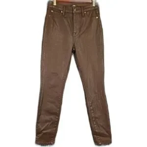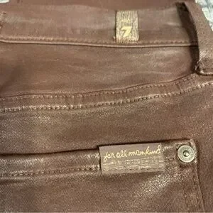 7 FOR ALL MANKIND Coated Brown Ankle Super Skinny High Waist Jeans Waist 25 #773