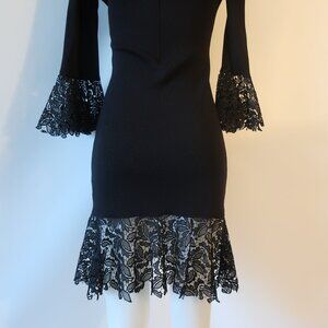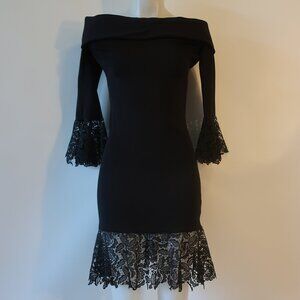 Women Sachin & Babi Black Crochet Lace Trim Peplum Off The Shoulder Dress M *