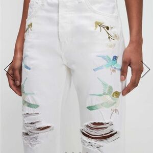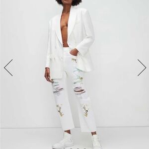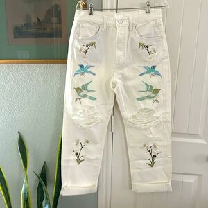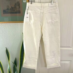 NEW 7 For All Mankind Easy Straight Ankle white crop jeans with embroidery