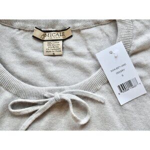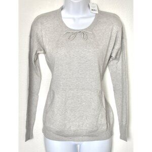 AMICALE NWT DROP SHOULDER CREW NECK COTTON/VISCOSE/CASHMERE GREY SWEATER. SIZE S
