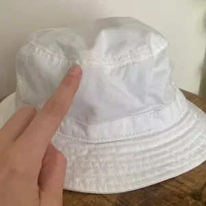 In used condition, see a small stain on on the side of the hat, probably can be bleached if necessary. Fits like a Medium