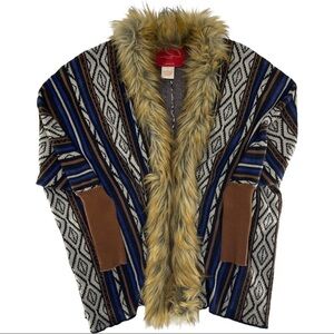 Akira Chicago Open Front Faux Fur Trim Cardigan