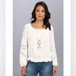 Free People Ivory Cut Out Peasant Blouse - Size Medium