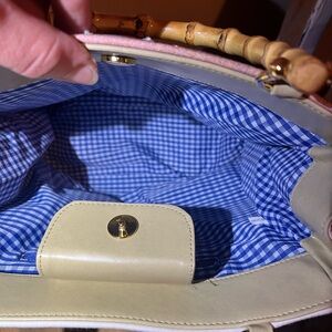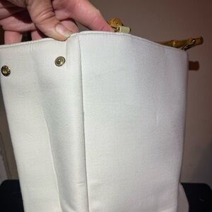 Vintage beaded elephant tote bamboo handles, in unused condition super clean with a couple light marks on back and bottom from storage, beaded art in excellent condition, small inside zipper pocket, snap flap closure and snaps on sides to secure items inside, 11.5" high, 10.5" wide, 4" deep, handles 5" high