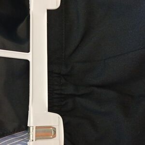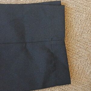 - Pants are navy blue. Waistband is flat in the front and elastic in the back. Pull on. No pockets.