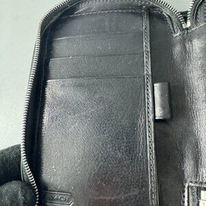 Vintage Coach Black Leather Zip Around Wallet Travel Card Case