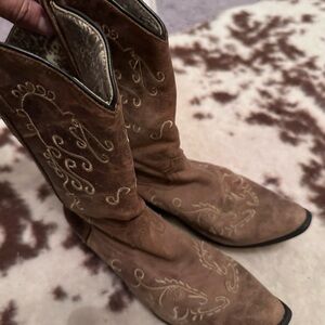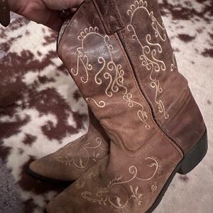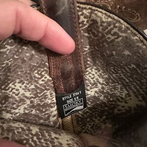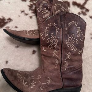 Smoky ladies sz 6 Cowboy Boots brown leather with white embroidery