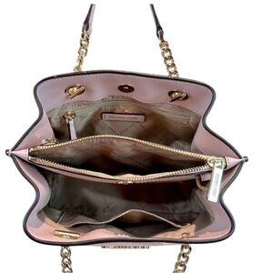 BEAUTIFUL SOFT POWDER BLUSH PINK PEBBLED LEATHER WITH GOLD TONE HARDWARE