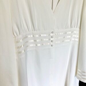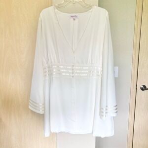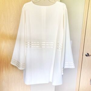 Touch of Cyn Womens Plus Size 2X White Tuxedo Stripe Blouse Flare Sleeve Tunic
