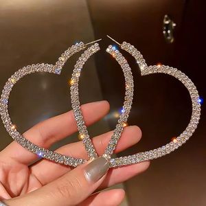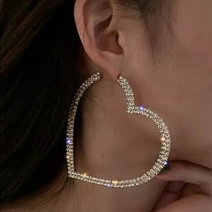 Heart hoop earrings rhinestone shiny sparkle y2k silver dangle glitter sexy