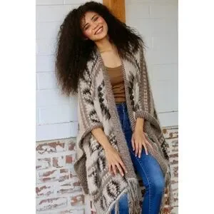ANGIE Sedona Southwestern Sweater Wrap with Fringe