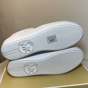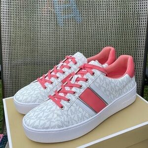 Michael Kors Poppy stripe lace up sneaker shoes bright white grapefruit color
