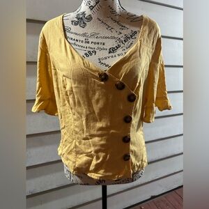 June & Hudson Womens Mustard Polyester Short Sleeve Button Front Crop Top Size Medium NEW