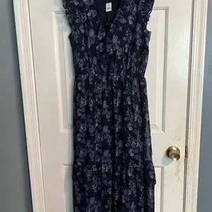 Banana Republic Midi-Dress. Navy Blue Floral print. Cap Sleeves. Tiered …
