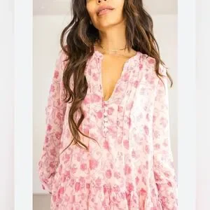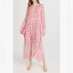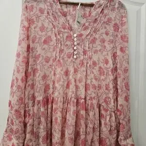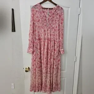 Free people pink floral Women's See Ot through maxi Dress xs NWT