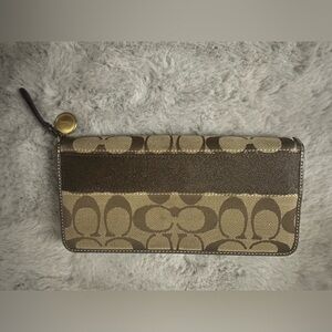 Coach accordion wallet in color lock signature canvas. Middle zipper area has some markings on it. I tried to get a good picture of it.