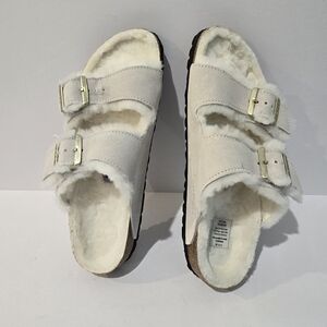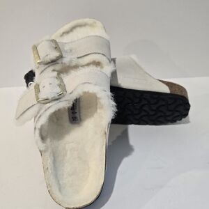 Birkenstock White Arizona Shearling Buckle Sandals 7