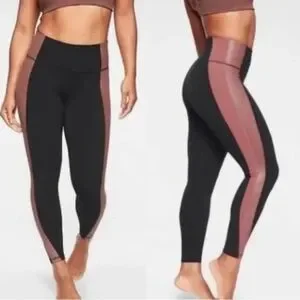 Athleta Salutation Colorblock 7/8 leggings, black and brown, size XS