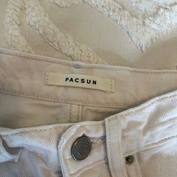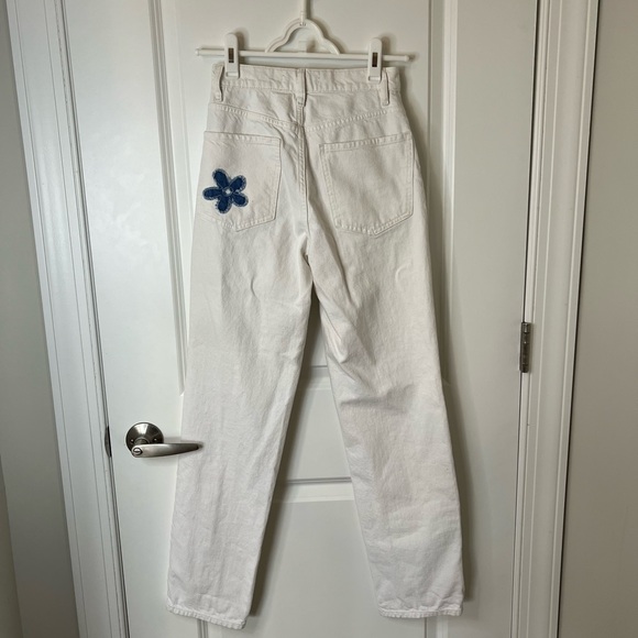 Adorable white jeans from PacSun with denim flower patches. Dad Jean design with high waist. Size 23 waist with measurements below. EUC, no flaws.