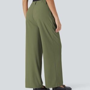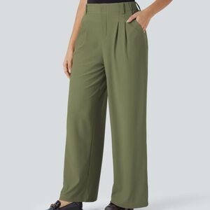 High Waisted Plicated Side Pocket Wide Leg Micro Waffle Work Pants