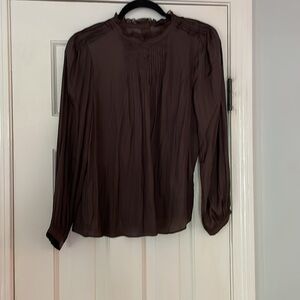 NWT J.Crew women’s ruffle neck drapery long sleeve top in dark brown size xs