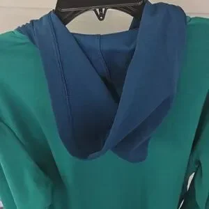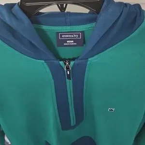 NWT. Crown & Ivy. Medium. 52% Cotton. 48% Polyester. front tunnel pocket for hands. Neck to chest zipper. Green and Blue. chest 23 inches. length 28 inches. sleeve 25 inches. very soft and comfortable. B 7