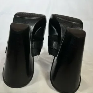 Cole Haan Women's Black Leather Heels Clogs Mules Shoes Silver Buckle