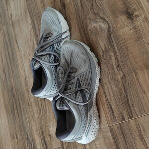Excellent condition, no rips, stains, or holes. The tread is hardly worn and has lots of life left. Light grey with pale blue accents. Brooks Adrenaline 21 road running shoes. Smoke free home.