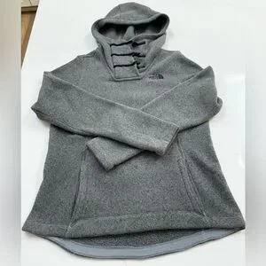This is such a cozy sweatshirt! Made of the “sweater” like material that is used by Patagonia. Grey, size small. Front pocket and fun toggle detail at neck.