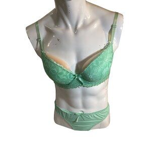Lace Covered Mint Green Push-Up Bra and Thong Panty Set**Sissy*Femboy*38C*New