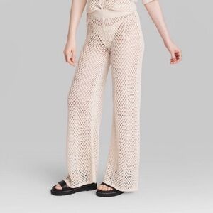 WILD FABLE Wide Leg Open-Work Pointelle Pants in Off White