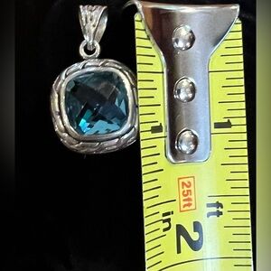 .925 Sterling Silver Blue Topaz Cushion Cut Bali Style Pendant - Approximately 1 1/8" L x 3/4" W