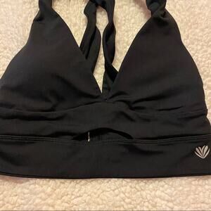 Forever 21 women’s size XS padded Bralette. No underwire. Wirefree. Wireless. Lightly padded. Bra is in very good used condition with no flaws or stains other than some minor wash wear. Black with strappy crisscross back and peep/keyhole in the front. Please see close-up pictures for condition details.