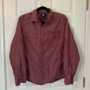 Rock & Republic Burgundy Textured Button Down Long Sleeve Shirt, size M