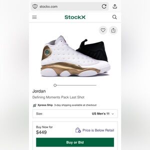 Size 11, worn a few times but in great shape (see photos), a few creases, no box. Originally purchased in the “Defining Moments Pack” which released as a dual pair alongside a pair of black and gold Jordan 14s.