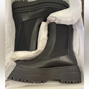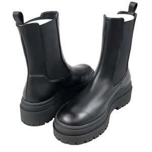 GOOD AMERICAN (Khloe Kardashian) Womens Leather Chelsea Combat Lug. New…